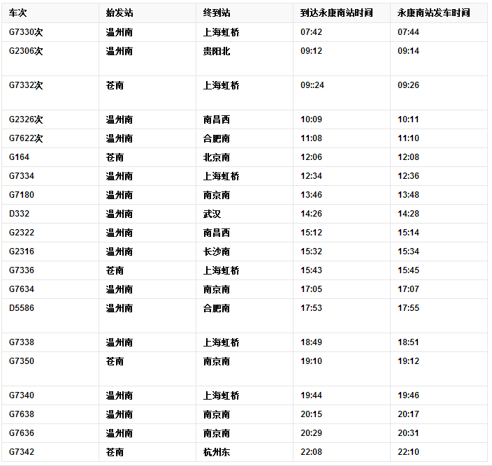 永康汽車(chē)東站(發(fā)往豫、皖、閩、川等省份和本省內(nèi)溫州、麗水、臺(tái)州地區(qū)以及金華地區(qū)內(nèi)義烏、東陽(yáng)、浦江、磐安等方向的長(zhǎng)途班車(chē),市境班車(chē)(開(kāi)放型)四路、棠溪、方巖、芝英、新樓等18條班線(xiàn)。) 電話(huà):0579-87218817